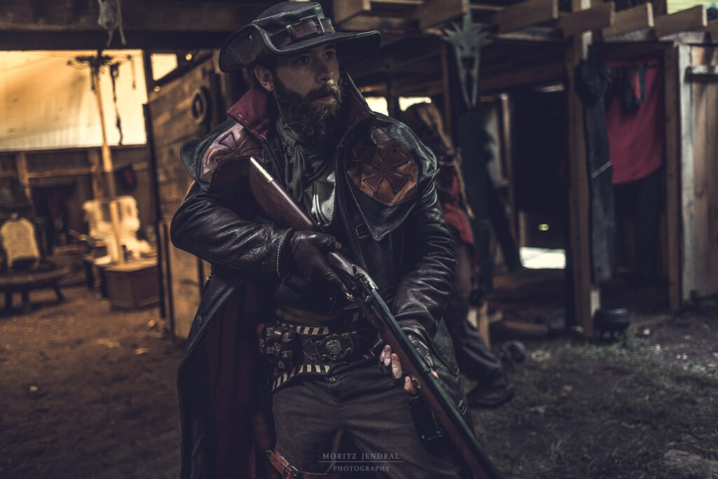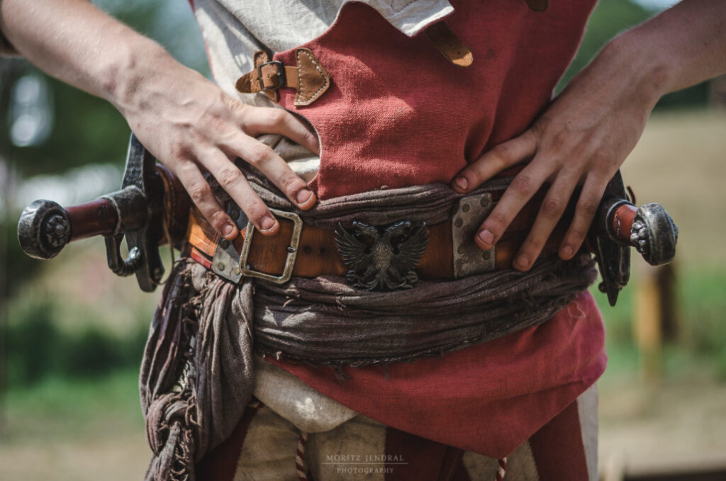 Individuelle LARP-Bekleidung aus Leder und robusten Materialien. Nur gut genug, wenn du damit einen Felsabhang herunterrutschen kannst!
